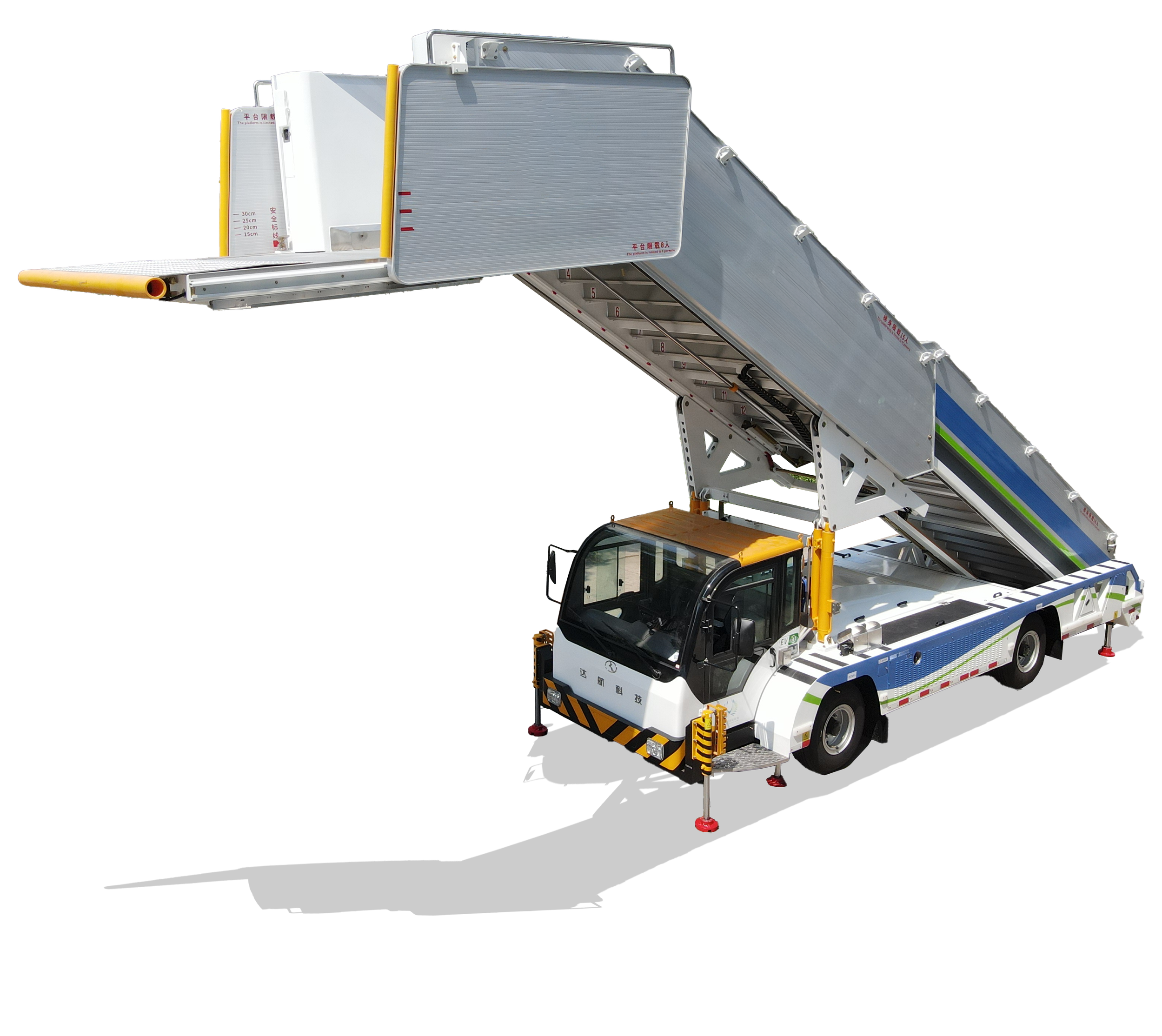 The TK-EKT58 is a fully electric passenger boarding stair with an automotive-grade CAN-bus control system and a wide 2150–5800 mm height range, designed to meet the needs of most global aircraft.